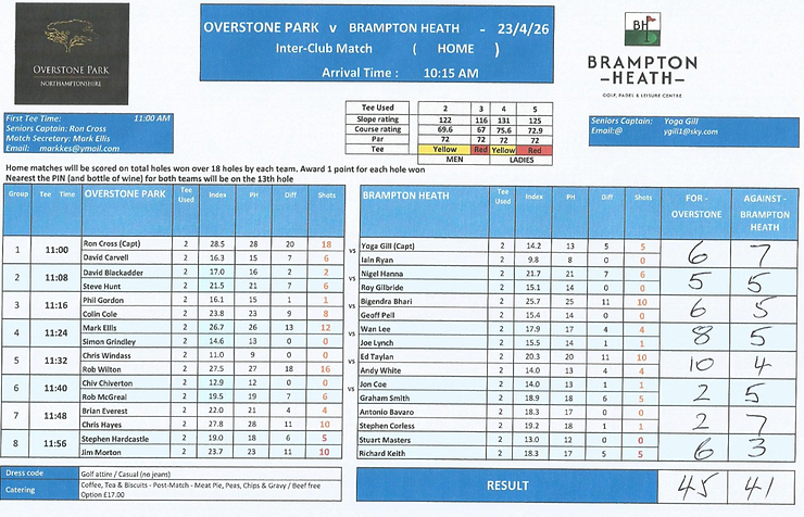 The results are shown below with our team winning another close match by 45 to 41 (cumulative 133 to 122)